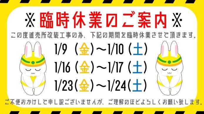 - 直売場、バーチャル店舗は1月9・10日臨時休業になります。